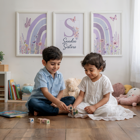 Set of 3: Lilac Floral Rainbow Posters